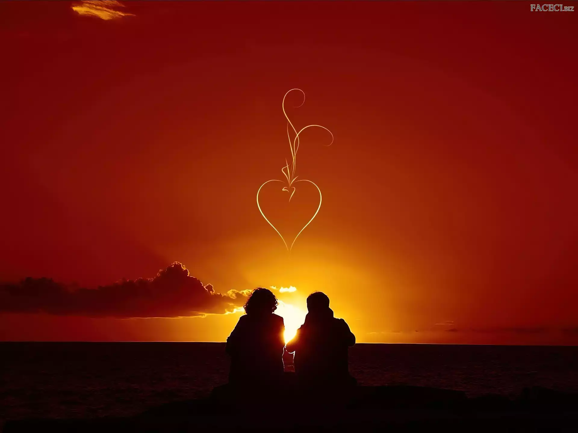 Postaci, Miłość, Serce, Słońca, Zakochani, Zachód - faceci.biz